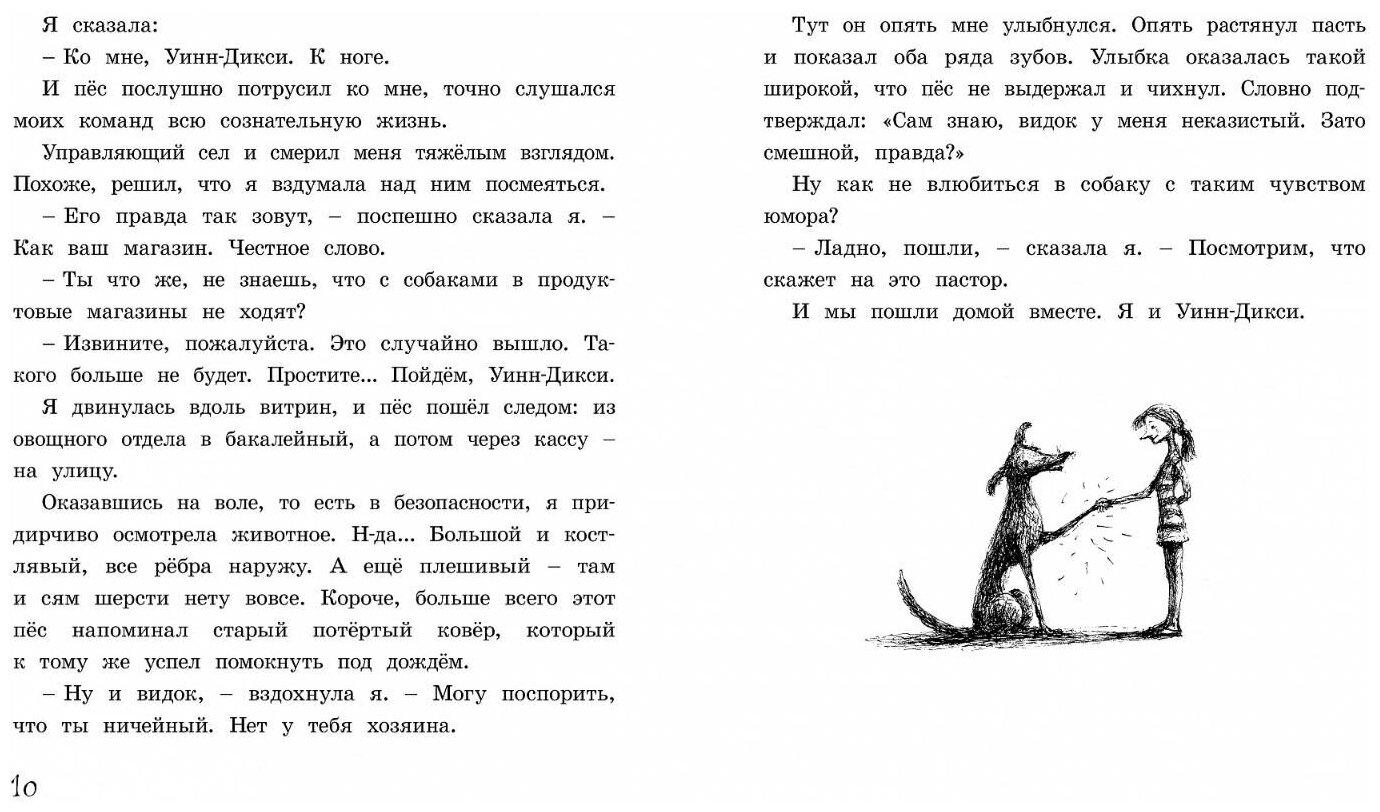 Десятилетняя Индия Опал Булони переезжает вместе с отцом в крохотный южный городок Наоми и чувствует себя ужасно одинокой - до тех пор, пока в один прекрасный день не встречает в супермаркете под названием "Уинн-Дикси" нелепого бездомного пса, который умеет улыбаться совершенно по-человечески. Девочке ничего не остается, как взять его с собой, так и назвав - Уинн-Дикси. Смешная собака учит свою маленькую хозяйку смотреть на мир другими глазами: благодаря ей Опал знакомится с удивительными людьми и наконец находит друзей там, где меньше всего ожидала.