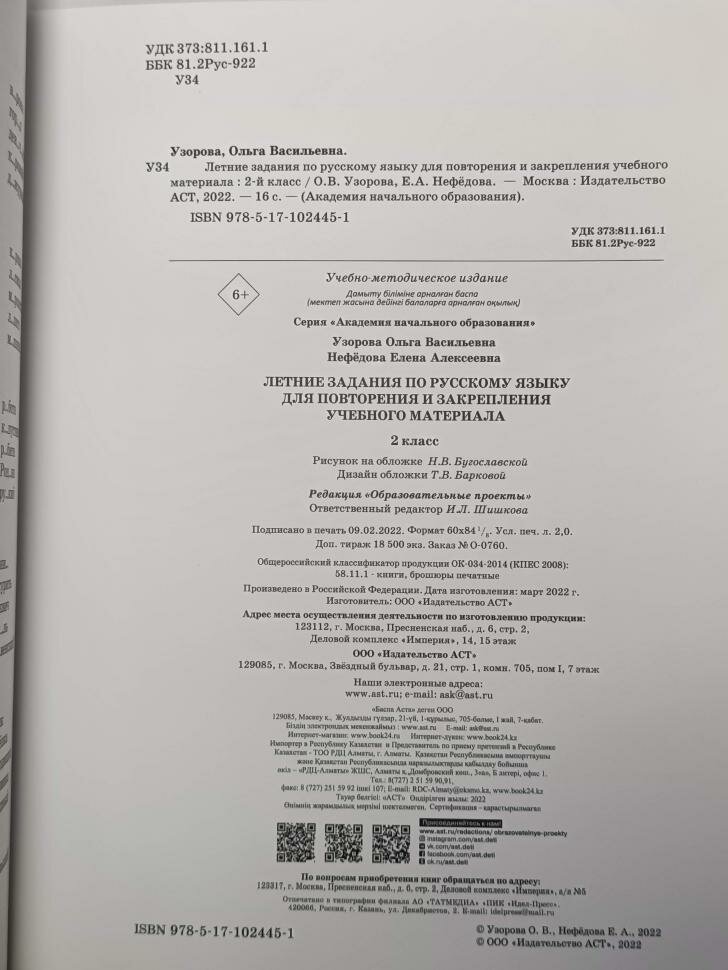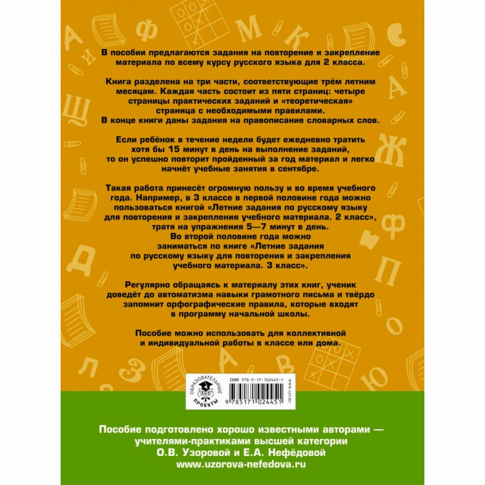Летние задания по русскому языку для повторения и закрепления учебного материала. 2 класс (Елена Алексеевна Нефедова, Ольга Васильевна Узорова); АСТ, 2025