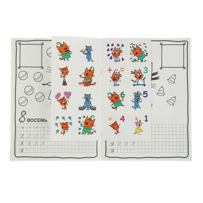 Три кота. Прописи с поощрительными наклейками: "Пишем цифры" и "Пишем буквы", 276х195 мм