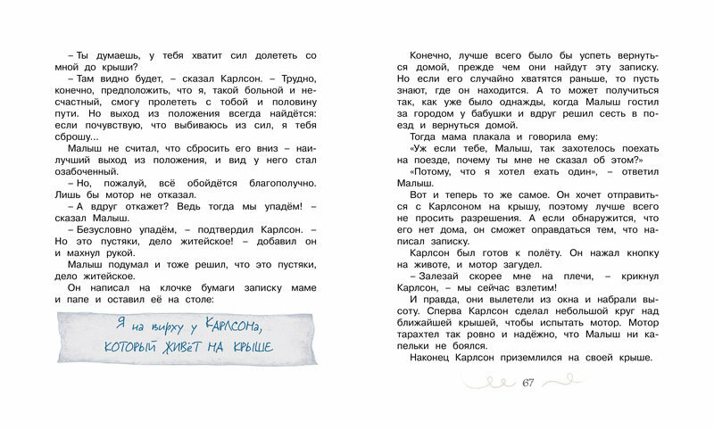 Махаон Книга Малыш и Карлсон, который живёт на крыше 978-5-389-11012-0 Особенности: Издательство Махаон представляет серию книг знаменитой писательницы Астрид Линдгрен. Она создала удивительный, волшебный мир детства и счастья, который завораживает взрослых и детей во всем мире. Творчество великой шведской рассказчицы было отмечено многими престижными литературными наградами. Ее произведения были переведены на 91 язык мира и проданы тиражом, превышающим 145 миллионов экземпляров.