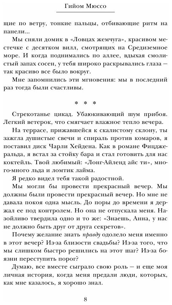 разочарована. Один из любимых авторов, скатился до политического детектива со слабой любовной линией. Интрига есть, но все настолько затянуто: слезы, сопли, переживания и поиски, поиски пропавшей девушки. В конце еще месть приплели. ничего из мистики, что характерно для всех книг Мюссо. +2-только за концовку.