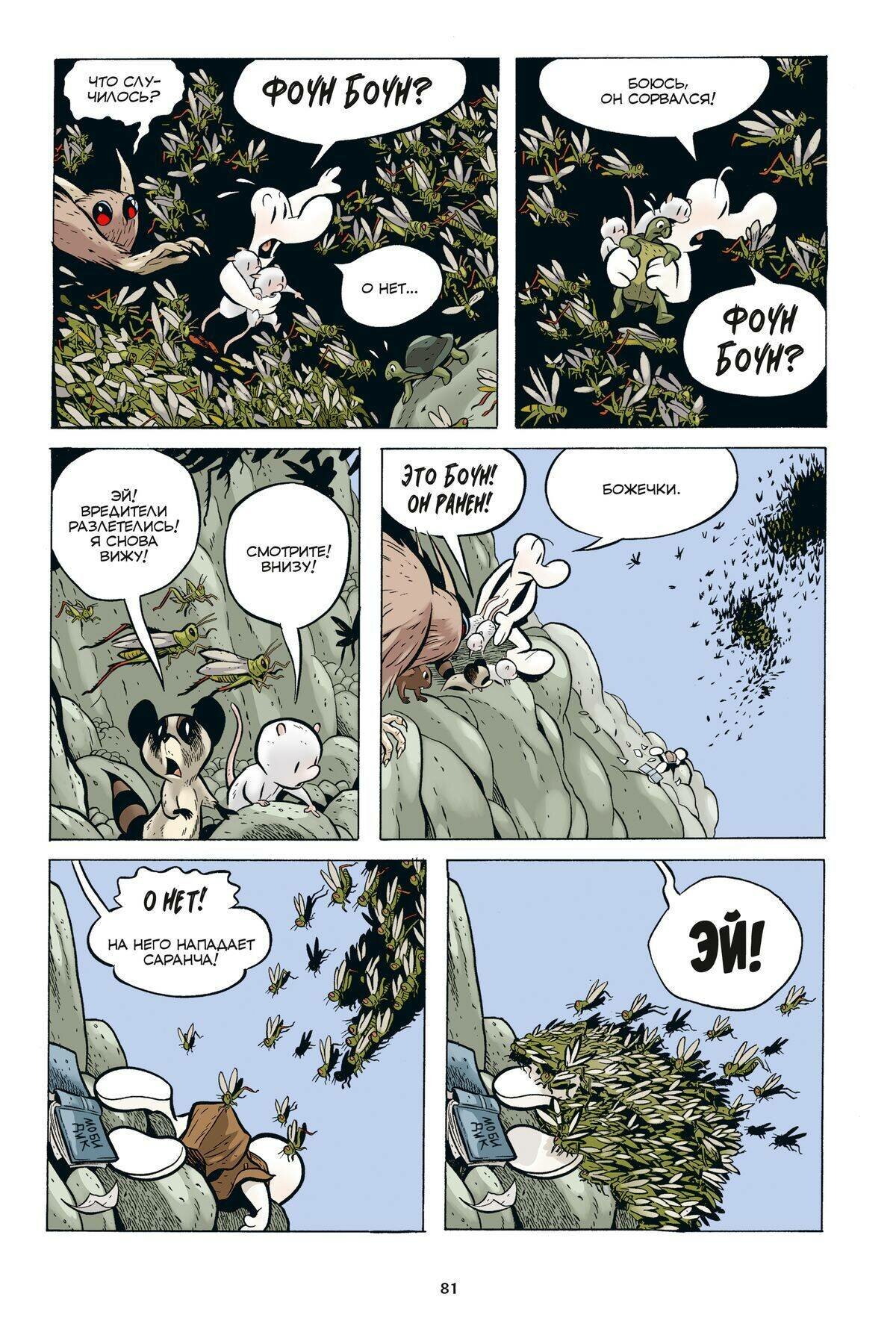 Продолжение известной серии Джеффа Смита, в которой он выступил и как автор сюжета, и как художник. Большая часть тома посвящена встречи главных героев с горным львов. Герои, так сказать, передыхают после событий предыдущей книги. Встреча эта вышла что надо. Яркой, эмоциональной и неизменно весёлой. Серию всегда отличал превосходный юмор. И авто продолжает держать уровень, несмотря на то, что мы уже перевалили за середину.