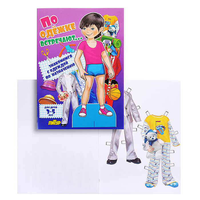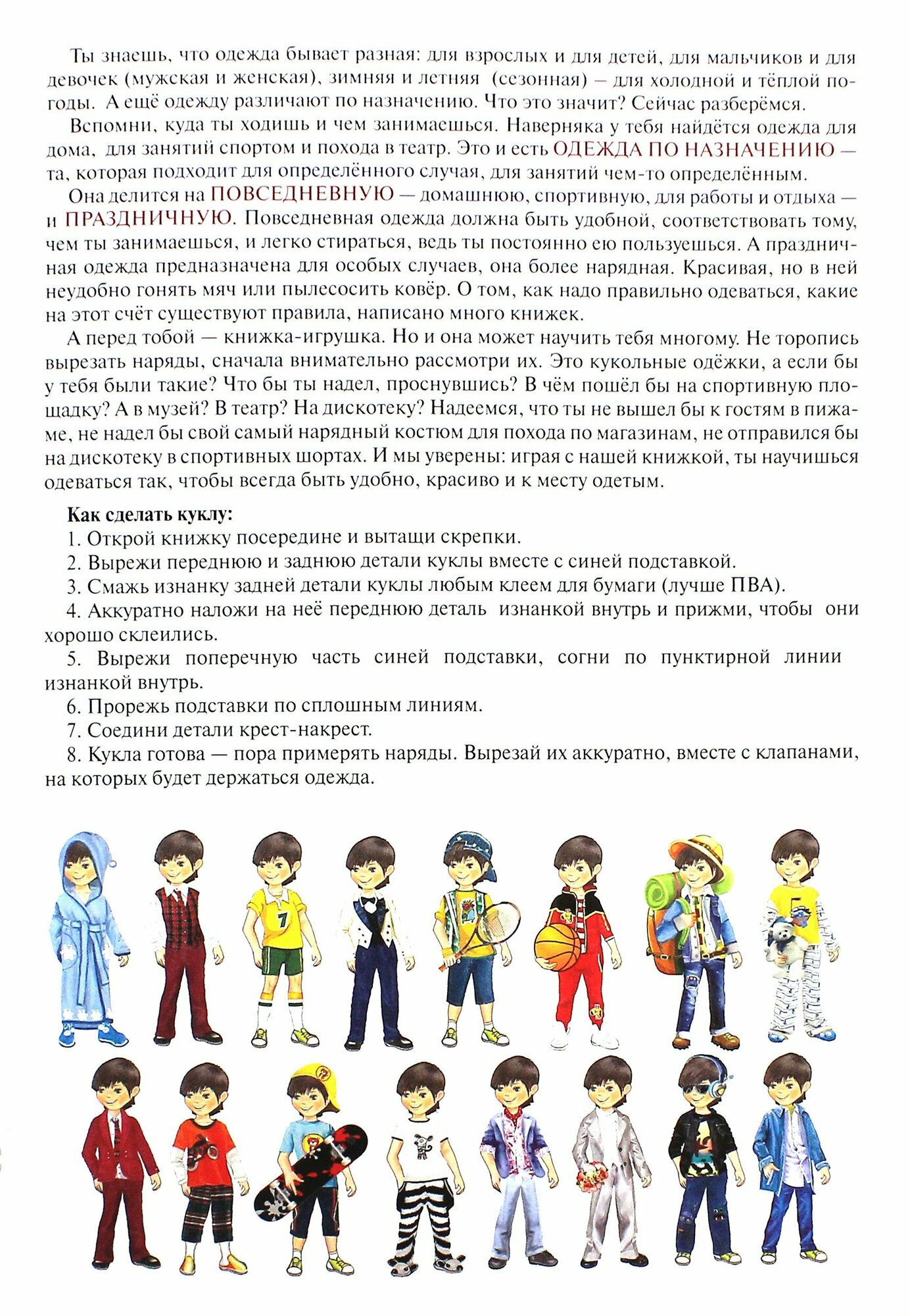 Бумажная кукла "По одёжке встречают. Мальчик" научит работать ножницами в игровой форме. Вырежьте картонную фигурку мальчика с обоих сторон обложки и склей между собой. А потом постарайся аккуратно вырезать симпатичную одежду. Друг готов к переодеванию. Не забудь придумать имя мальчику!
