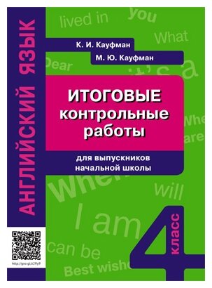 Сборник итоговых контрольных работ для выпускников начальной школы содержит 4 теста, состоящих из разделов "Аудирование", "Чтение", "Лексика и грамматика", "Письмо" и "Говорение", и предназначен для использования в IV четверти 4-го класса. По тематическому содержанию и языковому наполнению задания тестов соответствуют требованиям Примерной программы по английскому языку для начальной школы. Для скачивания аудиозаписей к сборнику сосканируйте QR-код на обложке мобильным устройством.
