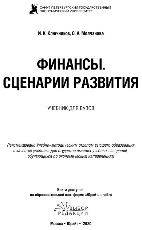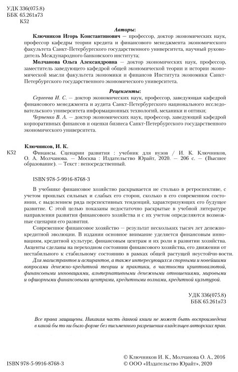 Финансы. Сценарии развития. Учебник (Ключников Игорь Константинович; Молчанова Ольга Александровна); ЮРАЙТ, 2019