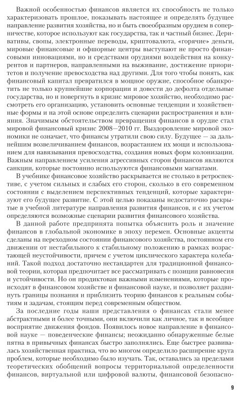 В учебнике финансовое хозяйство раскрывается не столько в ретроспективе, с учетом прошлых сильных и слабых его сторон, сколько в его современном состоянии, с выделением ряда перспективных тенденций, характеризующих его будущее развитие. С этой целью показаны недостаточно раскрытые в учебной литературе направления развития финансового хозяйства и с их учетом определяются возможные сценарии его развития.