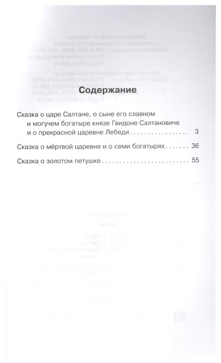 Приобрела это издание для внеклассного чтения на летних каникулах. Дочери, 1 класс задали сразу несколько произведений А.С.Пушкина : " сказка о царе Салтане....", " Сказка о мертвой царевне и о семи богатырях" и " Сказка о золотом петушке", все эти произведения уместились в эту книгу. Издание состоит из 55- ти страниц, шрифт не очень крупный, но достаточно неплохой для чтения школьником. Переплёт книги мягкий, книга занимает мало места, благодаря чему её можно спокойно везде брать с собой. Единственный минус этой книги, то что нет иллюстраций, детям скучно читать. Но за такую цену это отличная книга.