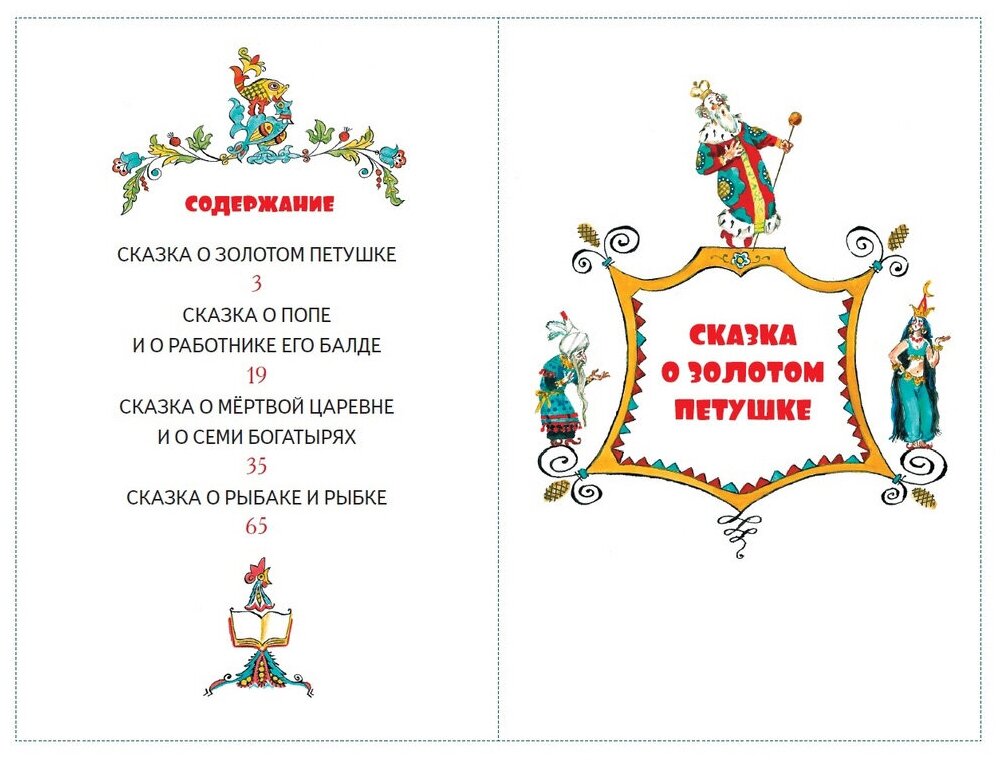 .Уже в дошкольном возрасте стоит прочитать малышам сказки А.С. Пушкина, познакомить их с чудесным сказочным миром, который он создал в своих произведениях и без которого мы уже не мыслим свою жизнь, свое духовное развитие. В эту книгу вошли "Сказка о золотом петушке", "Сказка о попе и о работнике его Балде", "Сказка о мёртвой царевне и о семи богатырях" и "Сказка о рыбаке и рыбке". Несомненно, что эти бессмертные творения доставят малышам много радостных минут.