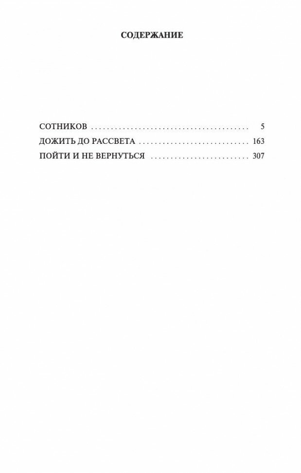 Василь Владимирович Быков, замечательный советский-белорусский писатель. Который написал немало книг о Великой отечественной войне. В этом издании представлено три повести. "Сотников", и "Пойти и не вернуться" Эти произведения после себя оставляют неизгладимое впечатление. Заставляют задуматься. В повести "Сотников" один из главных героев правильно поступает, он честный человек, хороший. Но в конце, что-то происходит с ним, и осудить его сложно, жить то хочется. В повести "Дожить до рассвета" говорится о том, что нет на войне маленьких побед. А в третьем рассказе повествуется, как в сложных военных условиях оставаться человеком, невзирая на предательство других. В этих рассказах нет батальных сцен, танковых атак, здесь говорится о переживаниях людских. Об их воле к жизни.