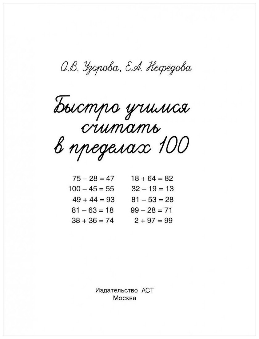 Быстро учимся считать в пределах 100 (Нефедова Елена Алексеевна, Узорова Ольга Васильевна); Сова. Малыш (Обучающая и развивающая литература), 2017