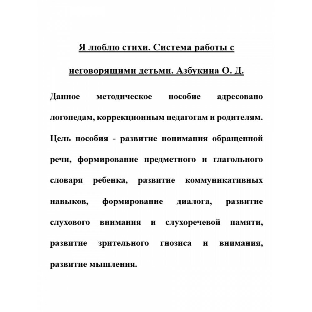 Я люблю стихи. Система работы с неговорящими детьми (Азбукина Ольга Дмитриевна); Секачев В., 2019