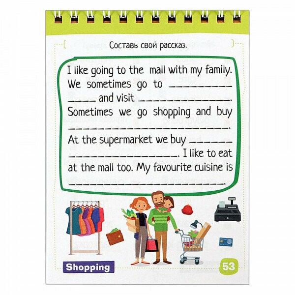 Сборник содержит кроссворды, игры со словами, загадки, веселые задания по теме "Покупки". Все это позволит выучить более 120 слов и начать говорить по-английски. Умный блокнот также включает в себя словарь, ответы и уникальную систему самопроверки, которая позволяет отработать изученную лексику.