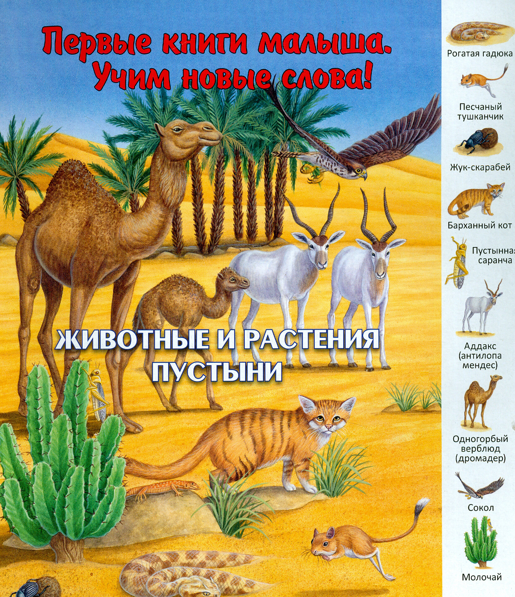 Первая книга малыша, учим новые слова! "Животные и растения пустыни", "Где обитают животные", Улыбка