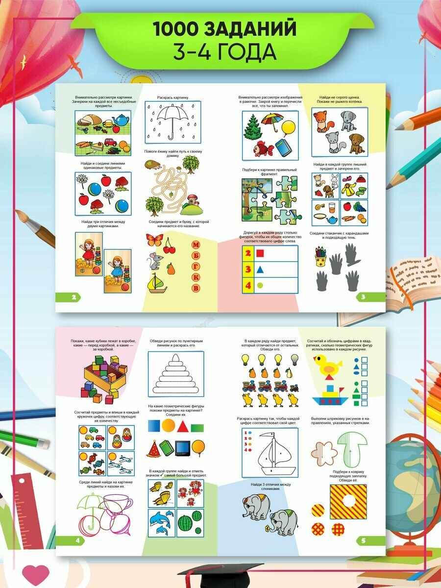 Книга: 1000 заданий. 3-4 лет (Кошелева А. (гл.ред.)); Улыбка, 2014