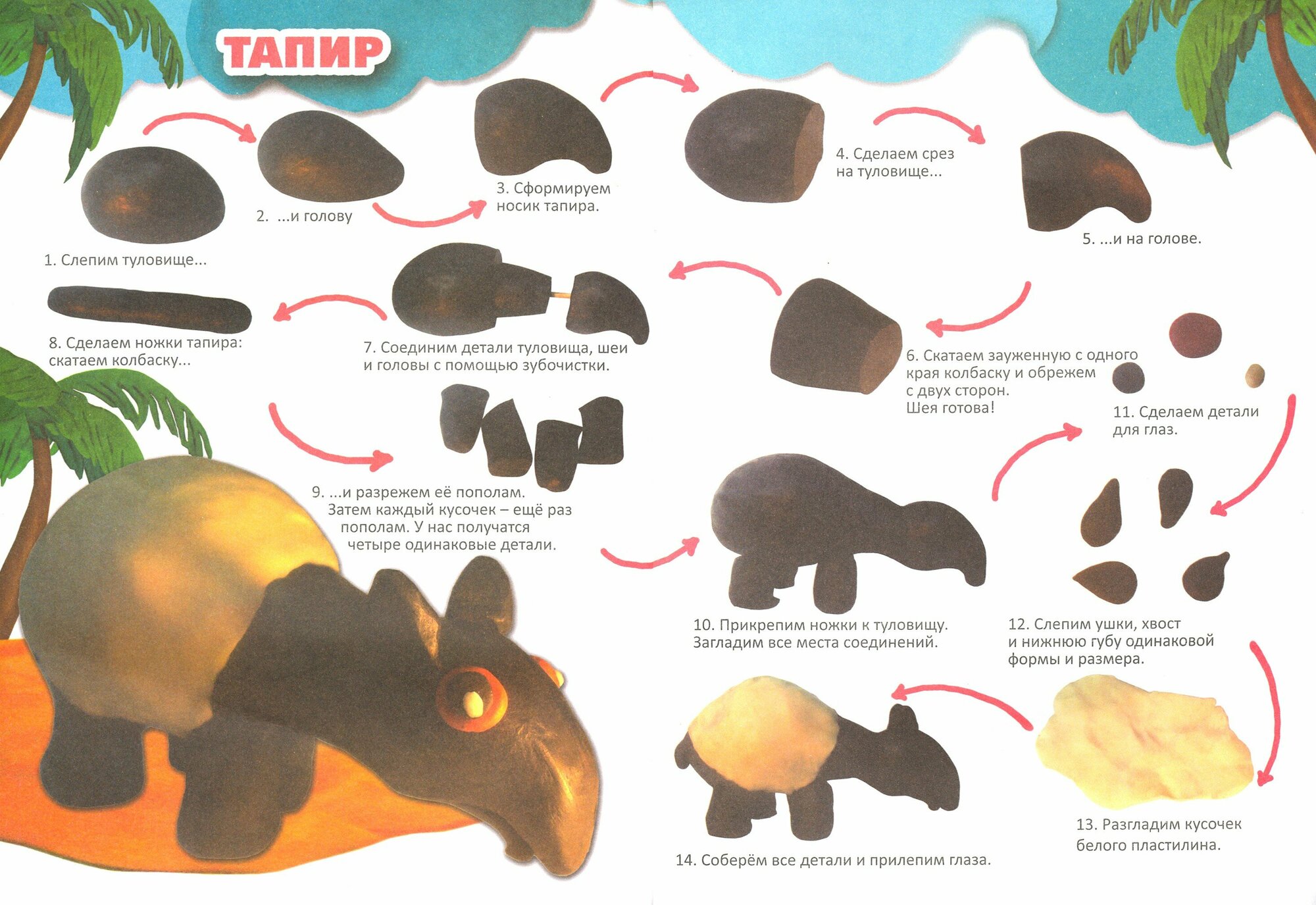 Книга "Тропические животные" из серии "Лепим из пластилина". Следуя подробным инструкциям, можно вылепить крокодила, кобру, тапира, обезьяну и других забавных животных.