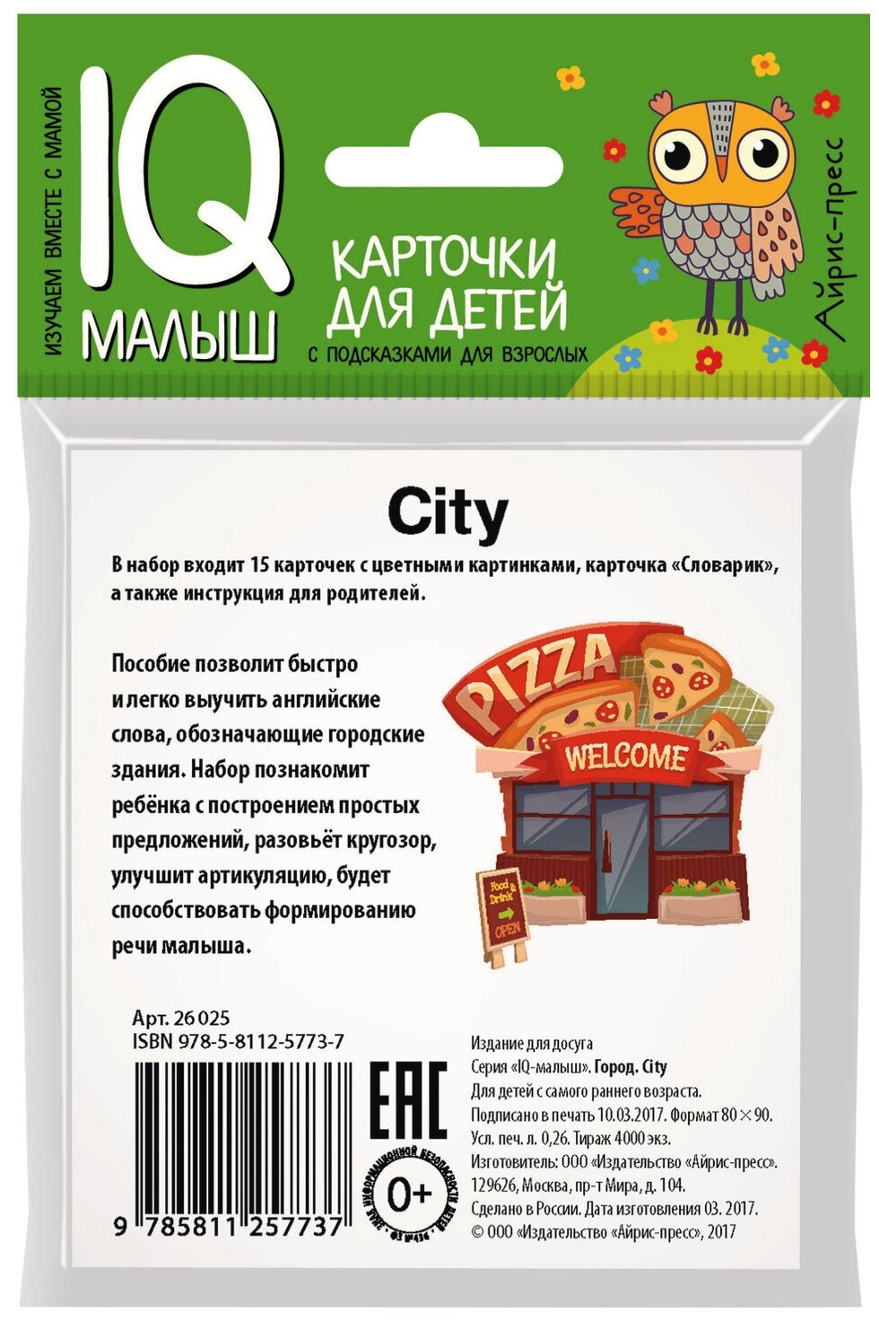 Умный малыш. English. Город / Citу. Карточки для детей с подсказками для взрослых. 15 карточек (без автора); Айрис-пресс, 2017