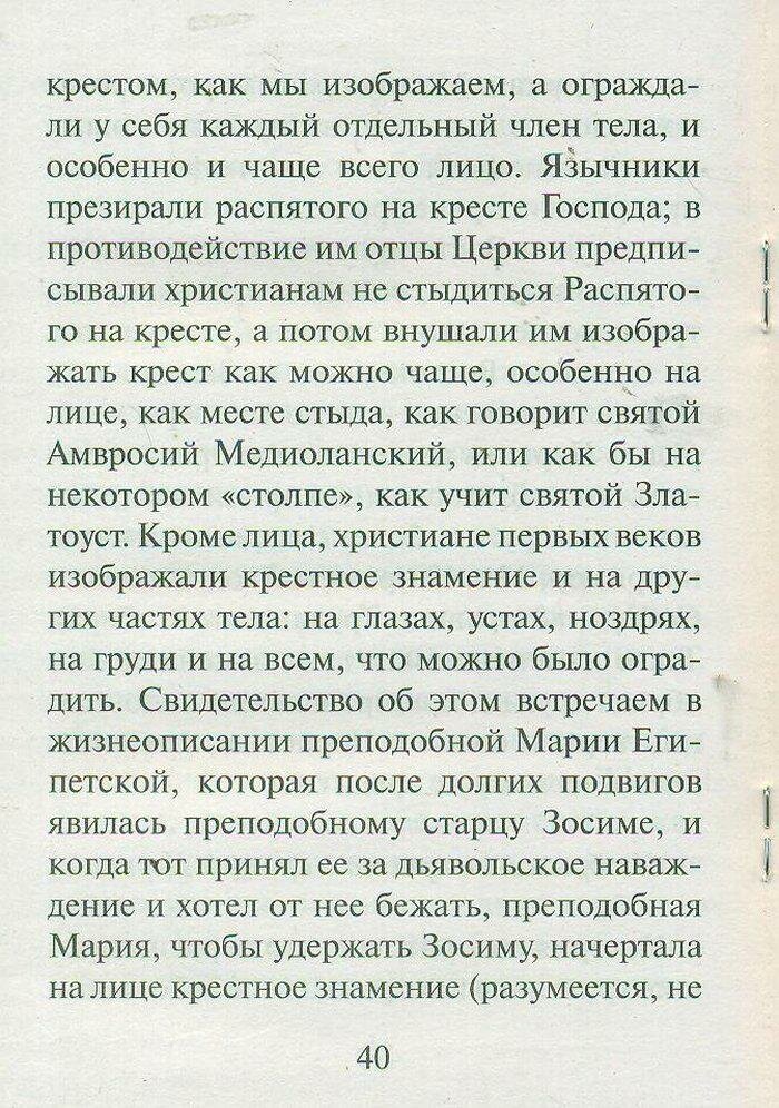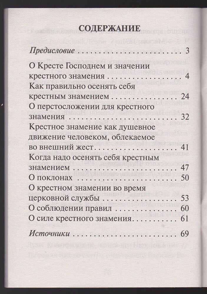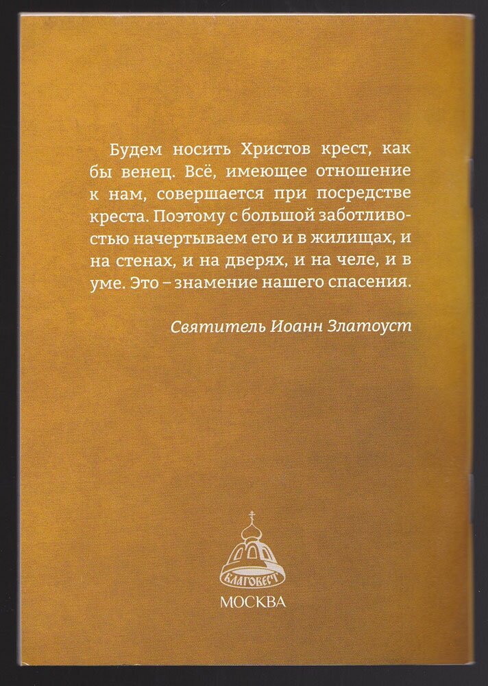 Настоящая брошюра рассказывает о сути, силе и значении крестного знамения для каждого православного христианина. Отдельное место в издании уделено формам крестного знамения в истории Церкви, а также правилам и порядку наложения крестного знамения во время разных богослужений в храме и во вне- богослужебное время. Издание рассчитано на широкий круг православных читателей.