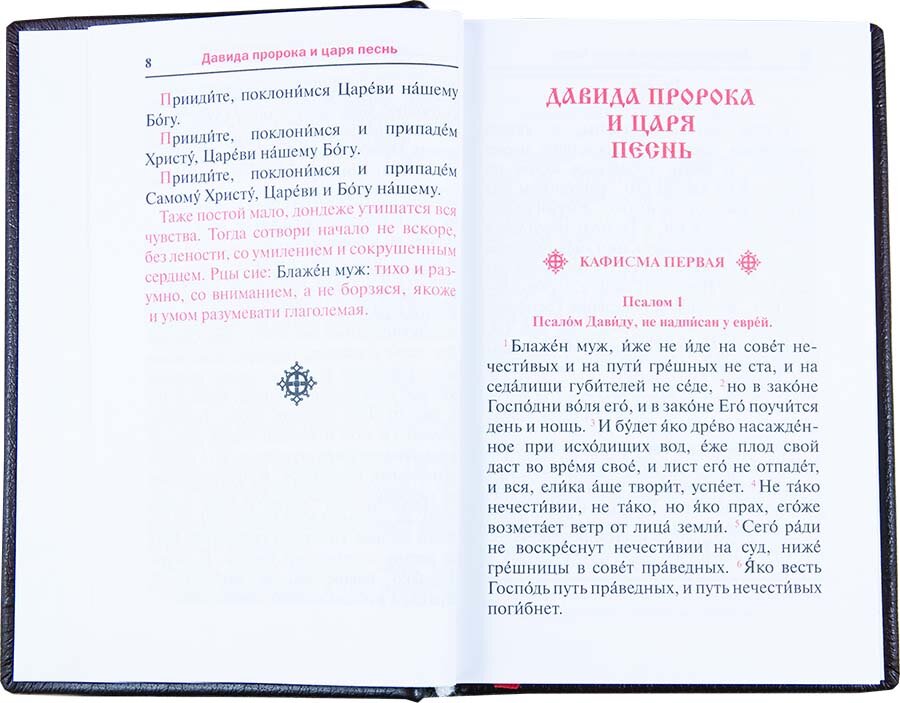 Предлагаем приобрести Псалтирь издательства «Скрижаль», удобную для домашнего использования. Книга имеет средний формат, твердую обложку. Текст набран русским шрифтом в два цвета. Издание содержит чин заупокойной литии для самостоятельного чтения мирянами дома и на кладбище, канон на разлучение души от тела, а также указания святого Арсения Каппадокийского о чтении псалмов в различных нуждах и церковные предписания о чтении Псалтири. Книга будет полезна каждому христианину, ведь, по мнению святых отцов, ежедневное молитвенное обращение ко Господу словами псалмов возвышает душу и умягчает сердце.