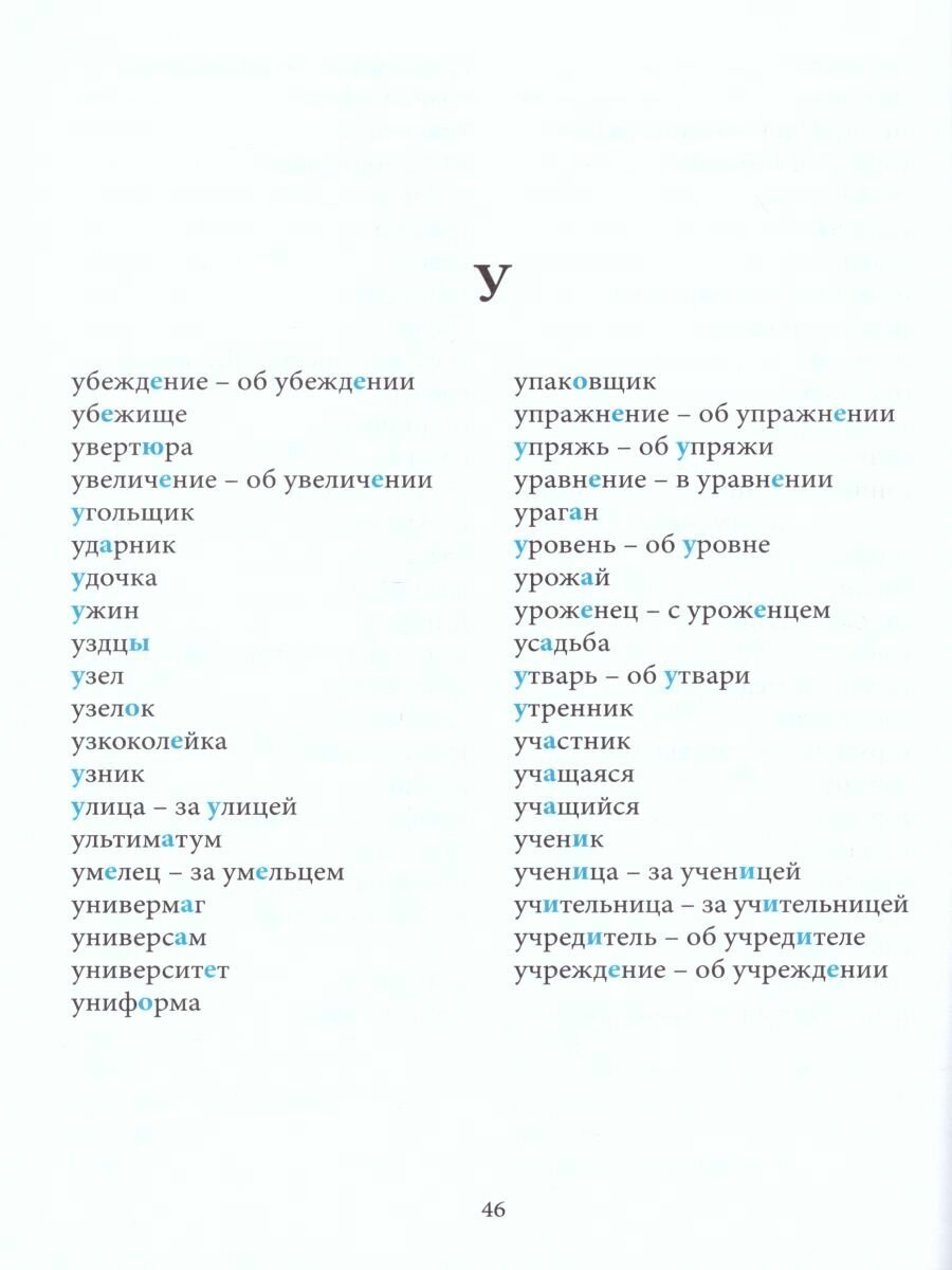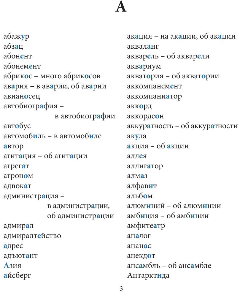 Небольшой орфографический словарь, состоящий из слов - имён существительных. В словах ударные гласные выделены цветом. Листы словаря белые, обложка из плотного глянцевого картона. В конце издания есть несколько разлинованных страниц для заметок. Словарь предназначен для учащихся школ, гимназий, лицеев. Приобрели словарь для первоклассника. Считаю, что будет полезным при выполнении домашнего задания. Рекомендую к покупке.