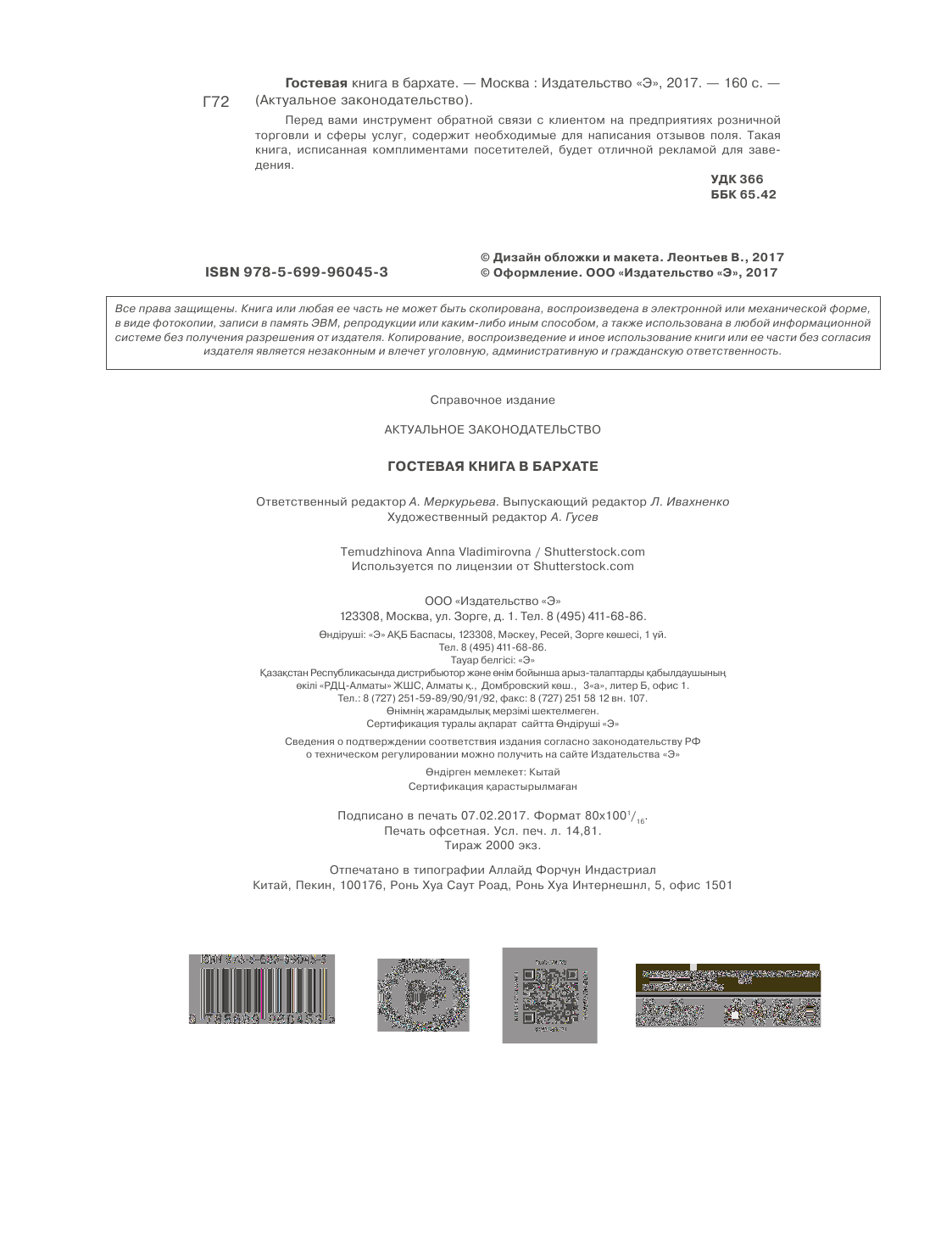 Исключительной особенностью издания является его премиальное оформление. Бархатная обложка с золотым тиснением, гербовая бумага — книга станет показателем статусности вашего заведения.