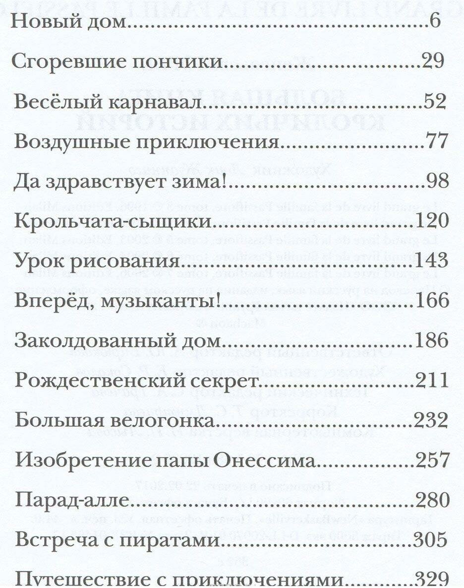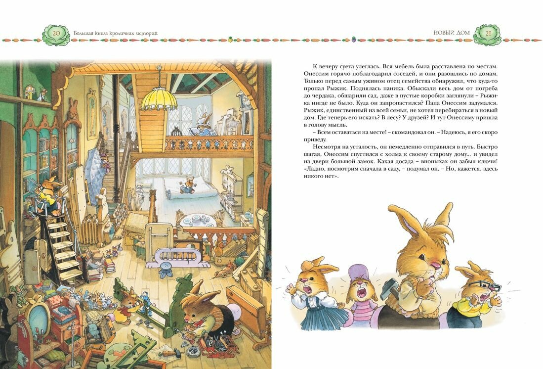 Привет всем!Вот хочу оставить свой отзыв об этой замечательной книге.В книге много иллюстраций,каждая страница открывает новый мирок приключений малышей -крольчат.Она очень красочная и нарисовано кстати,что не мало красиво и мило.Хочется рассматривать все мелкие детали картинок.Истории интересные и простые в понимании для малышей.Подарила своей племяннице на День Рождения и она ее с рук не выпускает,все просит почитай да почитай.А картинки для неё вообще шедевр искусства :) Еще хотела бы добавить,что книга большая и массивная и будет прекрасным подарком для малышей и родителей.Советую купить эту книгу,ни капельки не пожалеете.