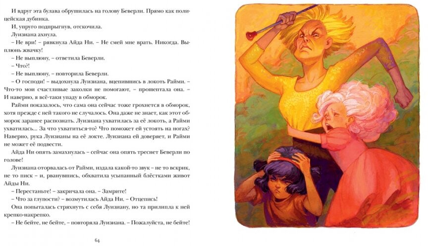 Три соперницы становятся лучшими подружками и "смелыми ковбойками". Это если максимально кратко. По моему не совсем похоже на автора,а в общем,конечно,весело и интересно. В отношении Кейт ДиКамилло я привыкла к каким-то прям сказочным сказкам с говорящими игрушками и зверюшками,но и эта книга меня ни в коем случае не разочаровала. Я всем сердцем предана автору и её книгам,они создают вокруг себя волшебную атмосферу и погружают читателя в беззаботное детство. В данной книге Райми Кларк очень близка мне по духу,ДиКамилло нарисовала очень колоритных персонажей. Отдельно нужно отметить Бабушку Луизианны-это просто огнище. 10 из 10.