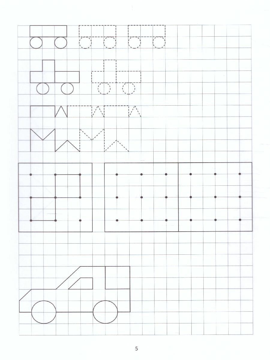 .Цветной вкладыш необходимо разрезать по пунктирным линиям. Получатся карточки с графическими рисунками. Ребенок может самостоятельно копировать рисунки на листе в клетку, а также может рисовать картинки под диктовку взрослого.