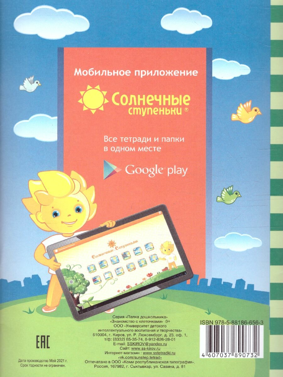 Знакомство с клеточками. Задания на развитие зрительного восприятия мелкую моторику рук. Для детей 3-4 лет (без автора); Дакота, 2017