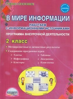 Данное методическое пособие содержит программу внеурочной деятельности «В мире информации. Работаем с информационными источниками» для учащихся второго класса общеобразовательной начальной школы.
