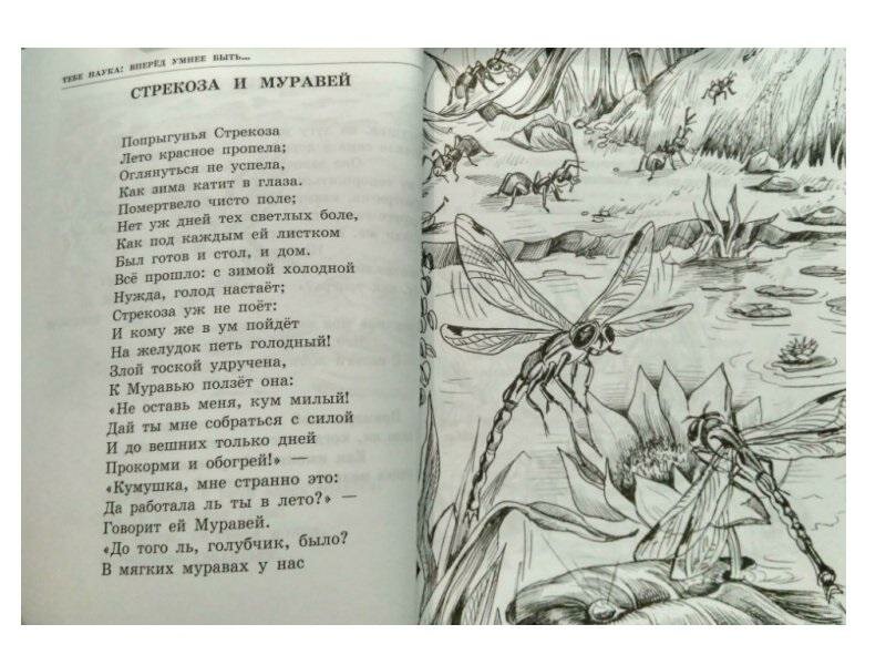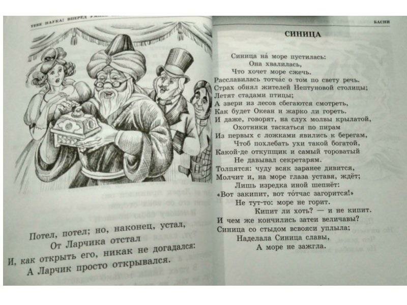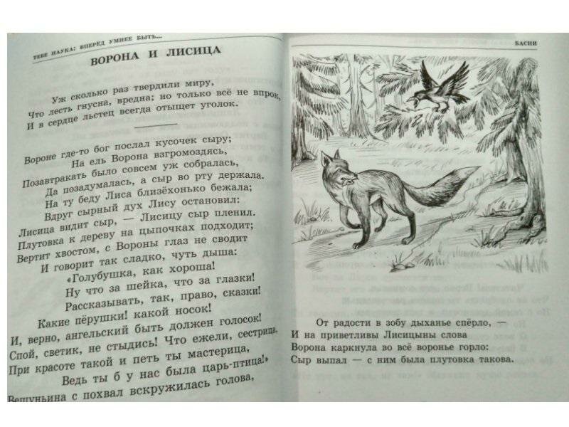 Данная книга - редкий, на мой взгляд, относительно большой по содержанию сборник басен (67 басен), при этом книга не толстая, в твердом переплете, очень приятная, иллюстрации почти на каждом развороте, как будто карандашом нарисованные, что мне особенно понравилось. -