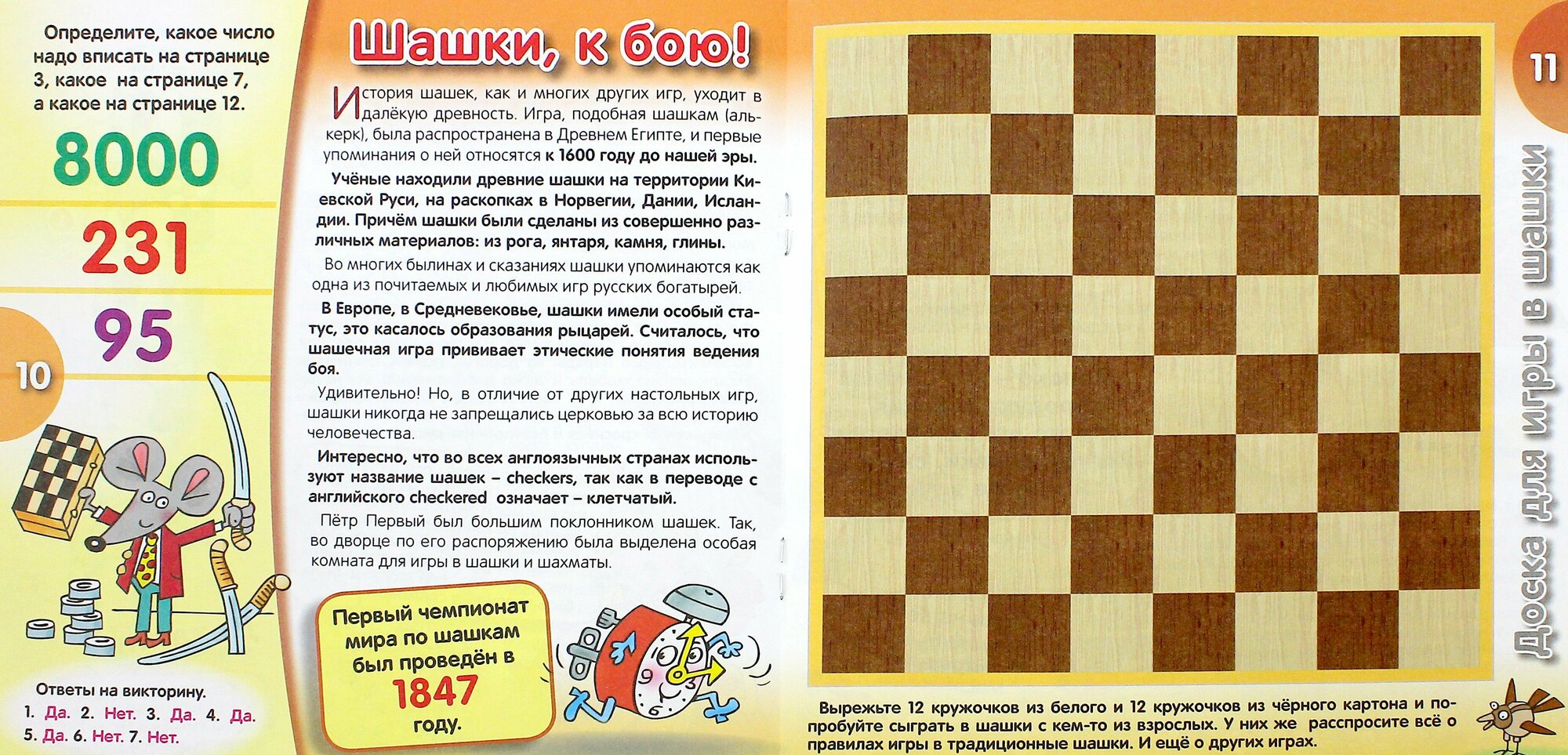 .Каждая книга серии - это настоящая мини-энциклопедия для маленьких эрудитов. Прочитайте ребёнку простые и информативные тексты, рассмотрите вместе с ним красочные рисунки, предложите выполнить задания, ответить на вопросы викторины, обвести и раскрасить выделенные рисунки. Всё это будет способствовать развитию интеллекта ребёнка, его воображения, внимания, памяти, смекалки и моторики руки.