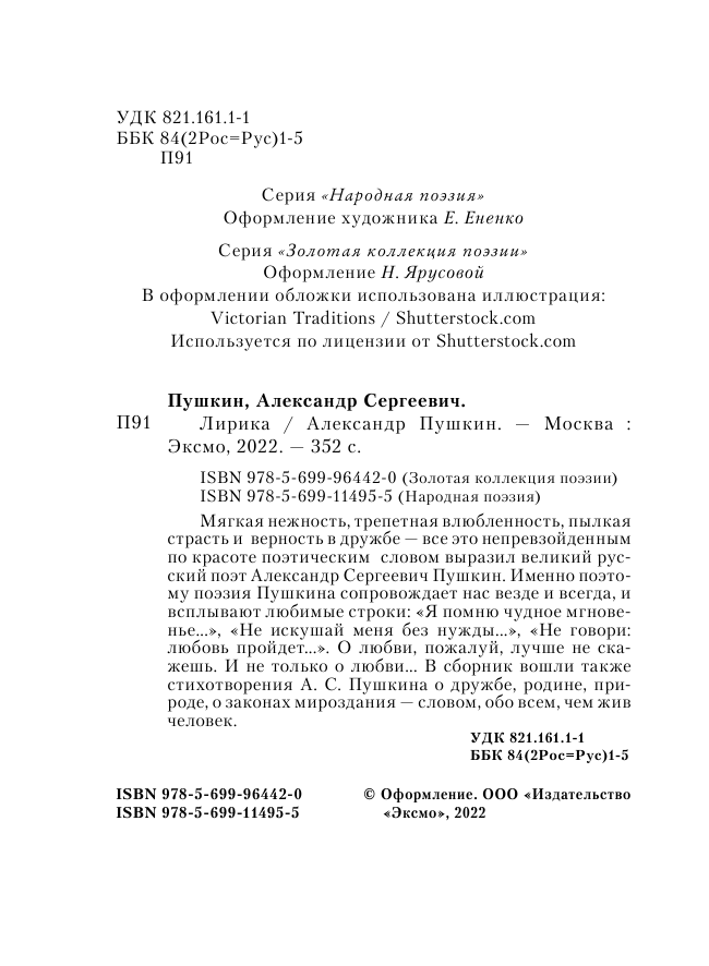 Очень люблю читать произведения Пушкина и решила поподробнее ознакомиться с лирикой. Выбрала этот сборник и осталась очень довольна. В нем,в основном,стихи о любви,но мне очень понравилось. Книга выглядит дорого,качественно,печать четкая. Закажу ещё один такой сборник на подарок. Также книга пригодилась дочери,которая учится на факультете филологии. В общем-находка! Спасибо!