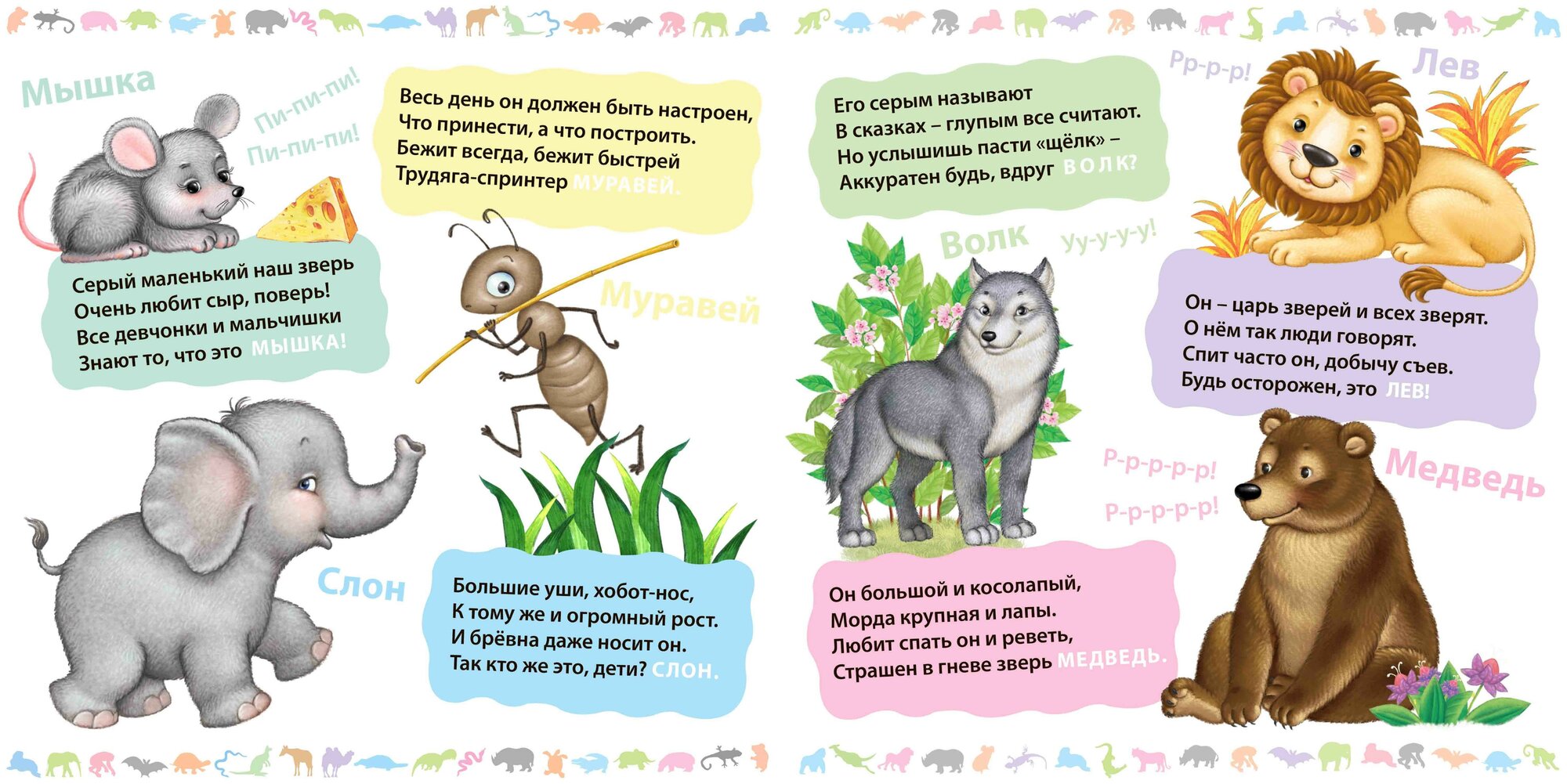 Все родители хотят, чтобы их ребёнок гармонично развивался и каждый день узнавал что-то новое. Малышам понравятся эмоциональные весёлые загадки-стихи о животных, которые помогут расширить кругозор. Многофункциональная развивающая книжка с загадками посвящена одной из самых популярных тем – домашним и диким животным. Малыш, который только начал познавать мир, наверняка уже знает самых популярных зверей, птиц и насекомых. А с кем-то ему только предстоит познакомиться. Прочитайте вашему ребёнку весёлые стихи-загадки, покажите иллюстрации, попросите угадать, о каком животном идёт речь. Большинство загадок – это наиболее любимые детьми стихи с рифмованными ответами. Более сложные загадки предполагают, что малыш должен узнать животное по стихотворению и картинке и дать правильный ответ. Стихи хорошо запоминаются, вскоре ваш ребёнок их выучит, как и названия всех животных. В конце книги вы найдёте объёмные фигурки-пазлы с подставками, с помощью которых ваш малыш может весело играть, а также будет выполнять интерактивные задания, например «соедини по точкам». Эта книжка способствует развитию внимательности, памяти, логики, сообразительности и речи ребёнка. Книга рекомендована для индивидуальных и групповых занятий дома и в детских дошкольных учреждениях.