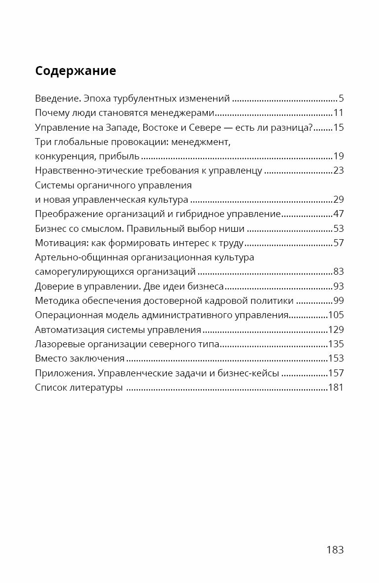 Современные программы подготовки управленческих кадров в нашей стране давно не дают должных результатов, потому что построены на копировании западных методик второй половины ХХ века (многие из которых признаны устаревшими даже на родине). Но Россия — это не Запад, и не Восток, Россия — это Север. И поэтому чистое копирование внешнего опыта управления для нас неуместно. В основе наших управленческих процессов лежит так называемый северный тип мышления руководителей, представленный в этой книге. Другими исконными особенностями построения успешных государственных и корпоративных систем в России являются артельно-общинная культура ведения хозяйственной деятельности и культура триалога в принятии решений. В качестве комплексного решения автор предлагает новый тип предприятий будущего — лазоревые организации северного типа.