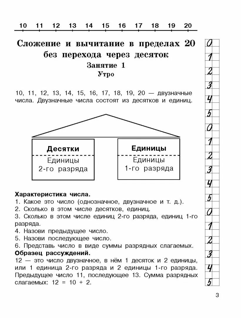 Очень хорошее учебное пособие. Урок разбит на утро и вечер. И еще дан материал на закрепление. Задания можно делать устно, они не большие, но очень удачные. 10 минут утром и вечером и никаких затруднений с решением примеров через десяток. Брала для летних заданий ребенку. Понравилось и ему и мне.