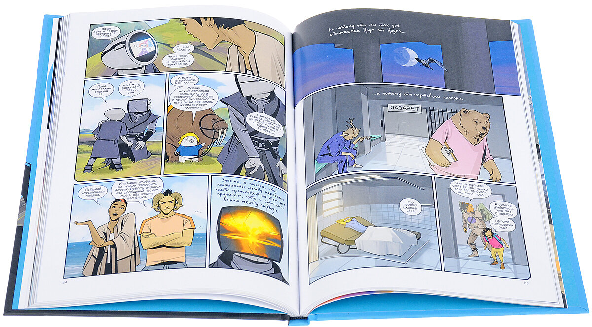 Достойное продолжение графического романа "Сага". Данный комикс понравился мне с первой книги и до сих пор не разочаровал. Радуют новые образы, интересные создания, отсутствие каких-либо зашоренностей. Качество отрисовки на достойном уровне, сохраняется внятная анатомия героев (как главных, так и второстепенных), даже несмотря на то, что человеческого к них зачастую не так-то и много.