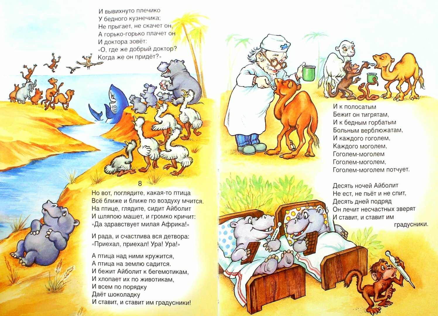Ps удивляет почему у издательства кочует из книжки в книжку ( с момента первой покупки прошло 8 лет) одна и та же ошибка- изображение "оторванного " хвостика возле ног айболита на первых страницах книги.,..... Выглядит жутковато:)