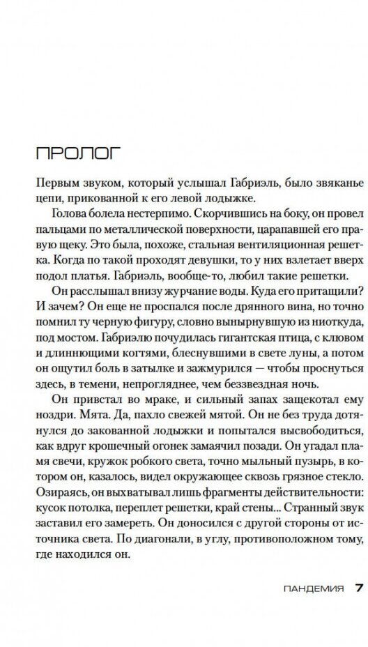 Книга Тилье "Пандемия" из тех, которые глотаешь залпом, испытывая полное погружение в ткань повествования. Первые 15-20 страниц вчитываешься, привыкаешь к стилю изложения, правда немного отвлекают отсылки к событиям предыдущих книг - прочитанных увы не всеми. Поначалу неспешное повествование набирает обороты, и вот ты уже летишь по страницам словно на спорткаре, и уже не можешь отпустить книгу и пропустить очередной поворот событий, и все больше резких поворотов, все выше скорость. Из обычной привычной всем эпидемии гриппа, и мертвых лебедей в парке, повествование переходит к чистому ужасу: ритуальные убийства с вырезанием внутренних органов, глобальная пандемия - известная как черная смерть, черный человек - доктор Менгеле наших дней ставит садистские эксперименты на целым миром, уничтожающий и развращающий заразой тьмы не одного человека, а всех кто может нырнуть в марианскую впадину "темного" интернета. Зло совсем рядом - оно дышит в затылок, шепчет в ухо и шевелит металлическим пальцами доктора Крюгера в зловонной канализации. Противостоят злу - полицейские и эпидемиолог - люди с личными психологическими травмами - потерявшие близких, столкнувшиеся с болезнями, фобиями - чтобы понять с преступника с извращенным сознанием надо самому прикоснуться к тьме... В конце книги раскрывается бездна зла - много темных теней - и полицейский сам вершит правосудие над "доктором Зло" ставя точку в долгой истории. Есть и небольшая ложка дегтя в книге - действенных противовирусных препаратов - кроме вакцин не существует, как и "иммуномодулирующих" - все они имеют эффект плацебо, а постоянное употребление антибиотиков вообще напрочь лишает организм сопротивляемости - так что употребляющая какие-то противовирусные таблетки героиня- врач-эпидемиолог вызывает большие сомнения, так как не может этого не знать. В одном кубометре воздуха находится несколько десятков тысяч спор грибков, микроорганизмов и вирусов и каждый день гуляющий Фонг ,в том числе и по магазинам без маски - парадоксально долго протянул - или во Франции очень чистый воздух. Но это мелочи. Книга запомнится надолго - жутковая вещь, напоминающая "Полет Аистов" Ж.К.Гранже - один из тех детективов которые можно рекомендовать читать, если не боитесь черного реализма без бога и надежды на спасение.