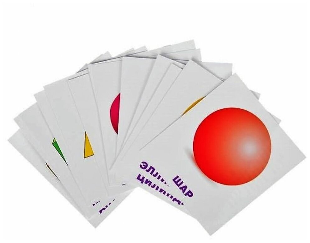 Объемные фигуры. Карточки для детей с подсказками для взрослых. Картинки чёткие. Для разнообразия к другим развивающим играм можно брать. Не самые прочные, тонкие, поэтому обращаться нужно аккуратно. Формат небольшой, удобно брать с собой при необходимости. Некоторые названия фигур не знают даже взрослые.