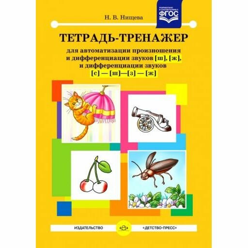 Тетрадь-тренажер для автоматизации произношения и дифференциации звуков [ш] [ж] дифференциации звуков [с] - [ш] - [з] - [ж] (Нищева Наталия Валентиновна); Детство-Пресс, 2020