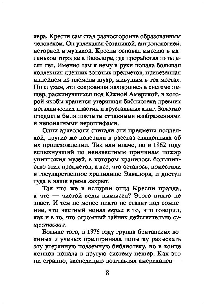 Знакомств с Роллинсом произошло у меня именно благодаря этой книге. У автора замечательно сочетаются фантастика и реальные факты. Сюжет увлекает и захватывает. Примечательно, что в конце книги автор пишет о том, что послужило основой для сюжета книги, причем это реально существующие исследования и открытия. Появляется желание прочитать о предмете больше. И все книги Роллинса именно такие - сочетают в себе правду и вымысел. Причем иногда правда оказывается настоящим открытием. Книга думаю также будет интересна подросткам, увлеченным фантастикой, а рекомендовать эту книгу родители могут спокойно, т.к. никаких "постельных" сцен в книге нет что тоже безусловно радует. Конечно есть и некоторые моменты, которые выглядят нарочитыми (например вездесущий американский патриотизм - США круче всех)), но на самом деле на фоне интересного сюжета это все теряется.