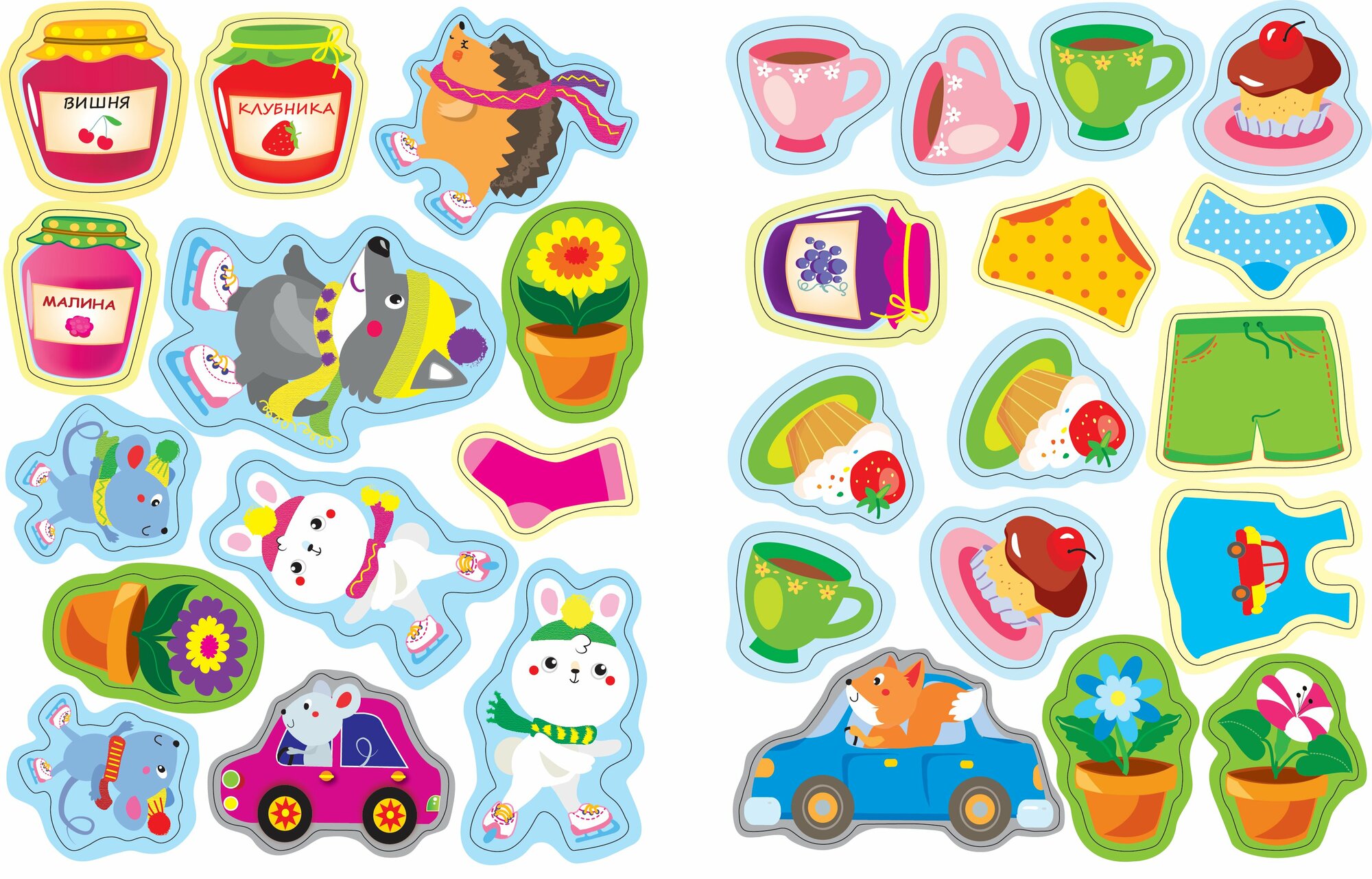 Помогите малышу подобрать нужные наклейки и дополнить картинки. Увлекательная игра гарантирована!