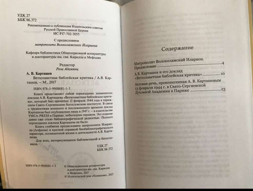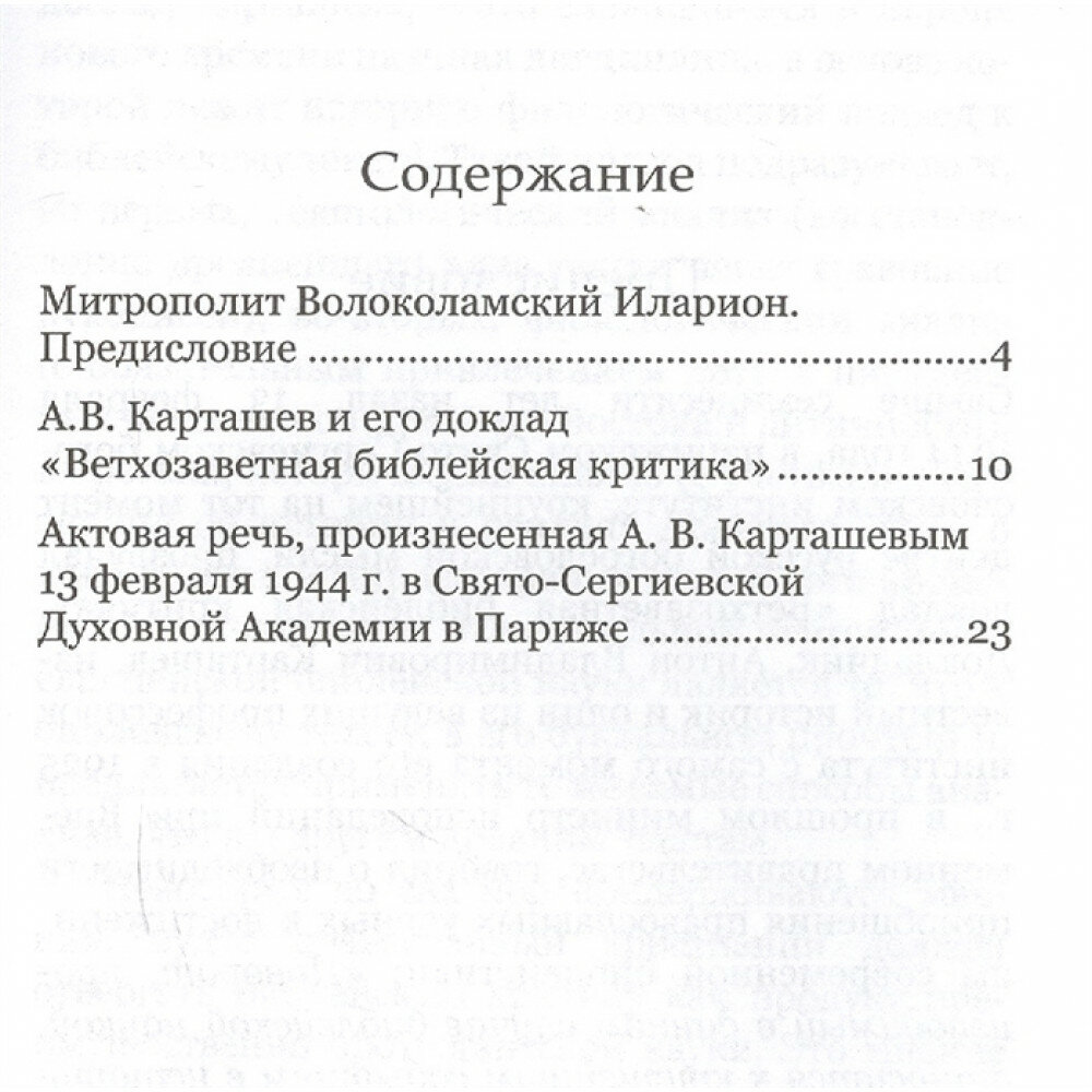 Книга снабжена краткой справкой библиографического характера, посвящённой жизни и деятельности А.В. Карташёва и предисловием митрополита Волоколамского Илариона (Алфеева): "...Вне всякого сомнения, филологические исследования Библии помогают нам восстановить исторический контекст Священного Писания, лучше понять, как слова Писания воспринимались первыми его читателями и слушателями. Как писал протоиерей Сергий Булгаков, другой представитель "парижской" школы русского богословия: "Истина едина, но постигается людьми в дискурсивном процессе развития. И православному сознанию нет оснований бояться библейской критики или смущаться пред нею, потому что чрез нее лишь конкретнее становятся постижимы пути Божии и действие Духа Божия, многократно и многообразно действовавшего в Церкви."