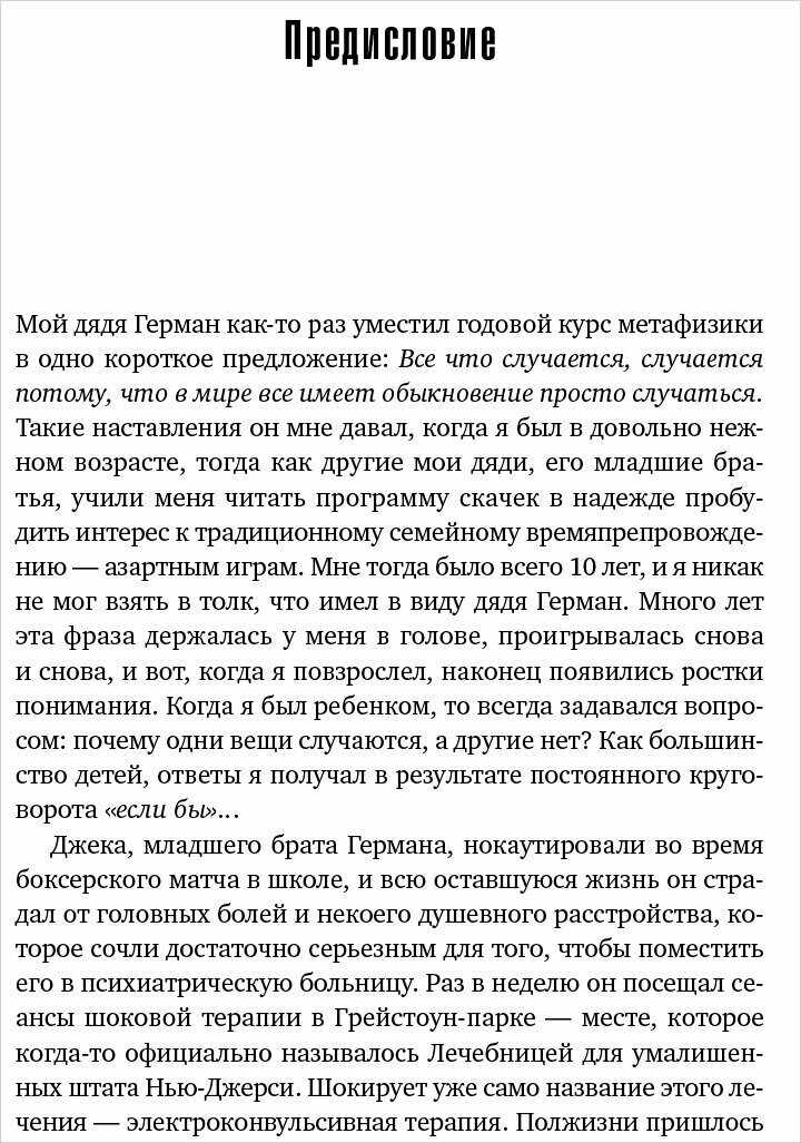 Что есть случайность? Этим вопросом мы задаемся, сталкиваясь с неожиданными и, казалось бы, невозможными совпадениями. Однако с математической точки зрения шансы многих событий гораздо выше, чем любой из нас мог бы подумать. В книге «Игра случая» математик Джозеф Мазур открывает необыкновенный мир теории вероятности, описывая сложные математические понятия простым, веселым языком. Как объяснить то, что книгу из школьной библиотеки с вашей подписью вы вдруг обнаруживаете на букинистическом развале в другой части света? Могут ли присяжные быть абсолютно уверенными в результатах анализа ДНК, найденного на месте преступления? Почему Аврааму Линкольну снились вещие сны? На многих примерах реальных событий Мазур показывает нам неотвратимость случайных событий. Эта книга понравится всем, кто когда-либо задавался вопросом, каким образом маленькие решения, которые мы принимаем в течение жизни, складываются в невероятное целое. Книга обязательна к прочтению любителям математики, а также всем тем, кто стремится понять истинную природу невероятных историй.