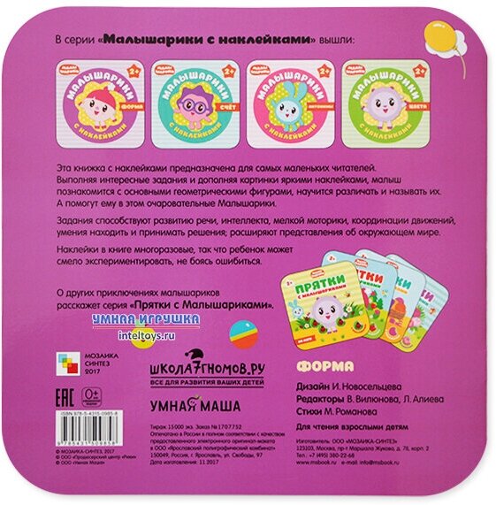 Сервис сравнения цен СкидкаГИД предлагает сравнить цены на товар «Книга: Форма. Малышарики с наклейками (Вилюнова В., Алиева Л. (ред.)); МОЗАИКА kids, 2017»