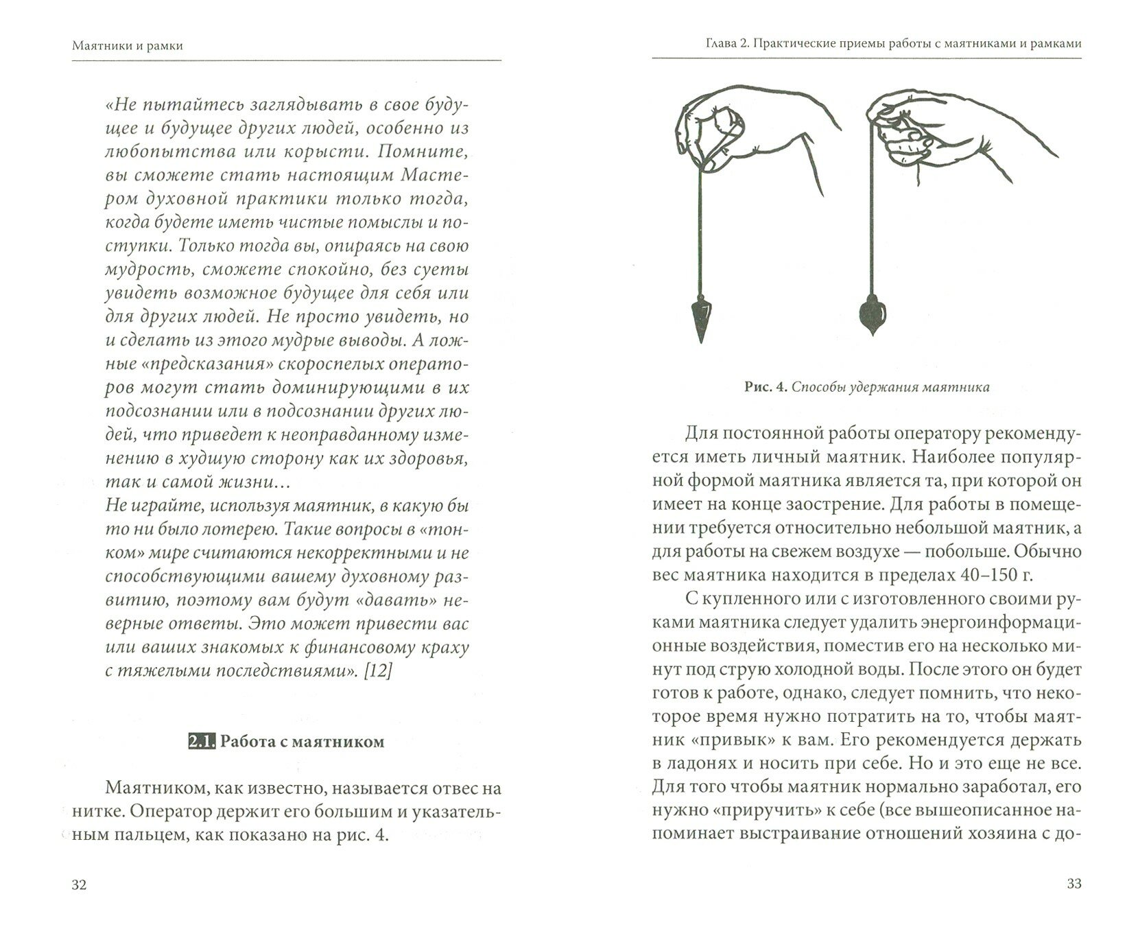 Популярное изложение основ работы с маятниками и рамками - простейшими биолокационными приборами. Прочитав эту брошюру, вы узнаете о том, как с их помощью находить источники воды, потерянные вещи, как провести диагностику заболеваний на ранних стадиях, проверить качество продуктов и определить местонахождение геопатогенных зон.