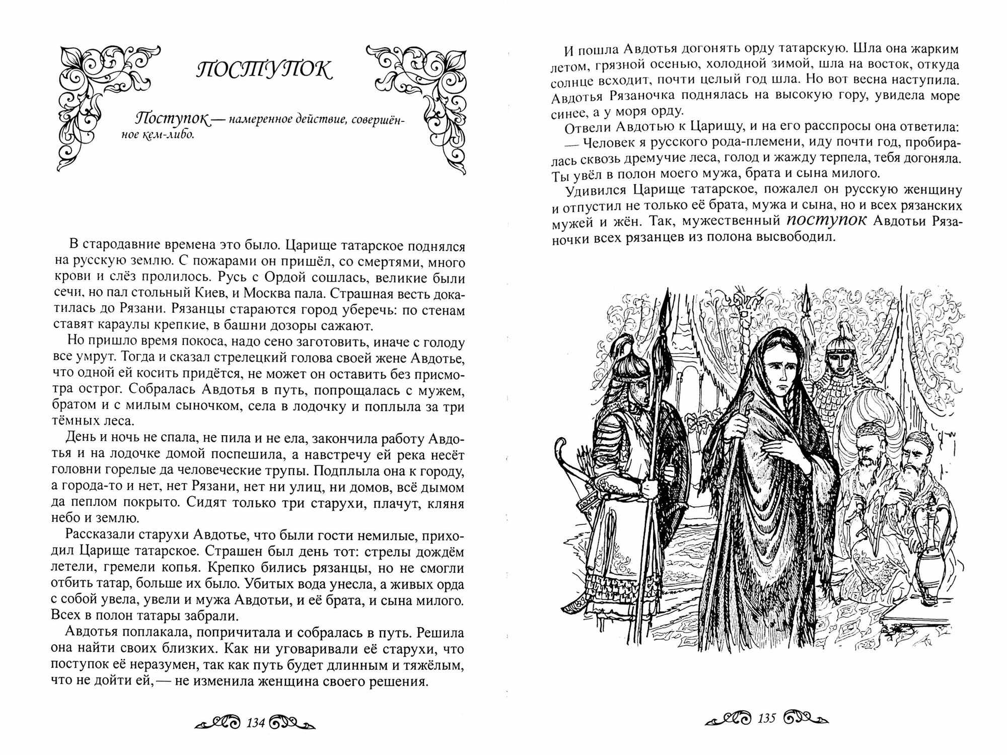 Чудесная и умная книга об этике. Написано живо и доступно, но всё младшим школьникам лучше давать материал в пересказе. Книга ценна не только в возможности ознакомиться с большим литературным материалом и не только. Детям легче понять абстрактные понятия на конкретных примерах. Обложка ламинированная. Бумага тонкая, офсет. Иллюстрации в виде черно-белых рисунков. Детям помладше можно подобрать дополнительно иной иллюстративный материал