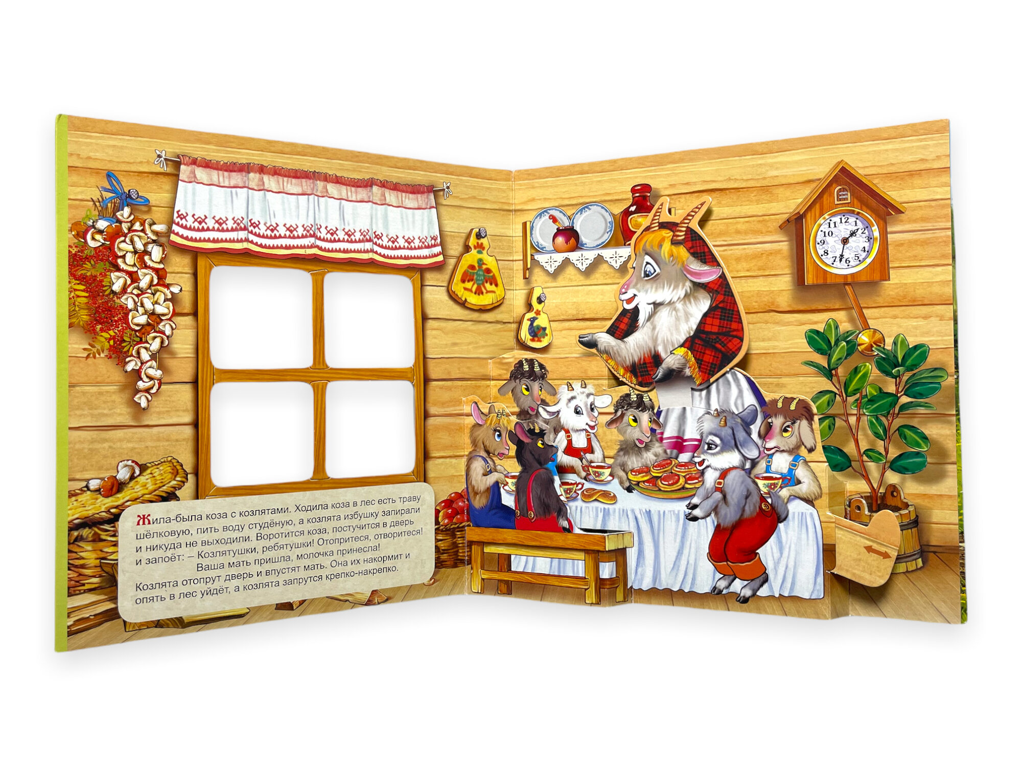 Книга серии «Сказка в окошке» - книжка-панорама с движущимися фигурками и яркими иллюстрациями. Малыши могут не только послушать сказку, но и поиграть, «оживляя» персонажей.