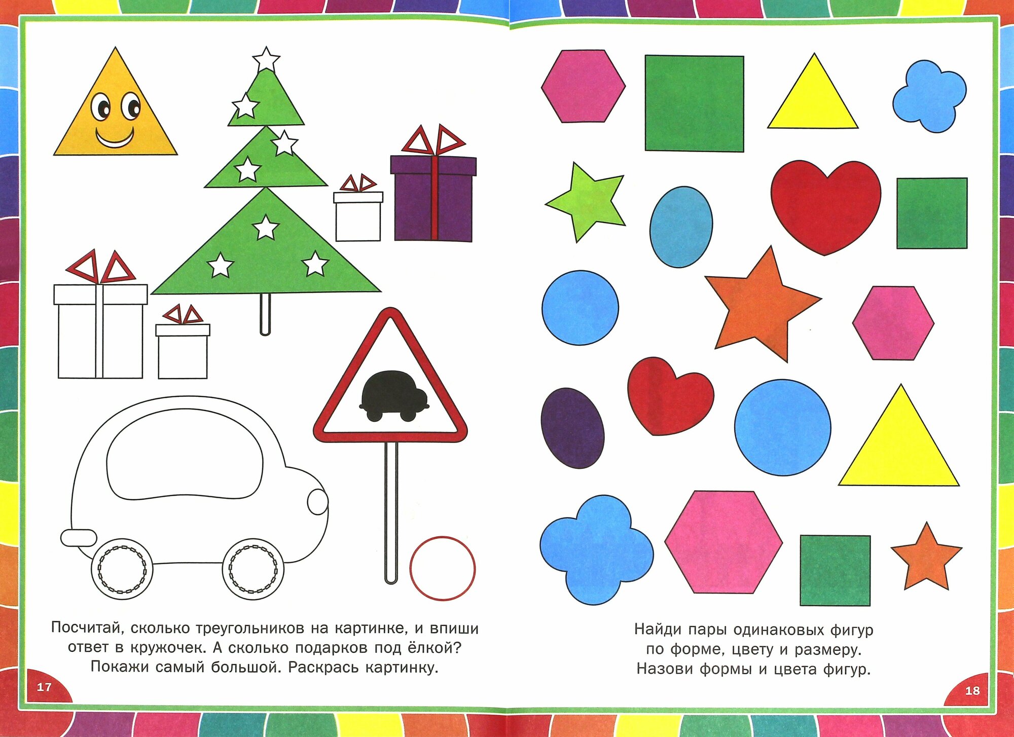 В книге представлены интересные задания, снабженные яркими рисунками, выполняя которые, ребенок постепенно научится узнавать фигуры, цвета и сравнивать размеры.