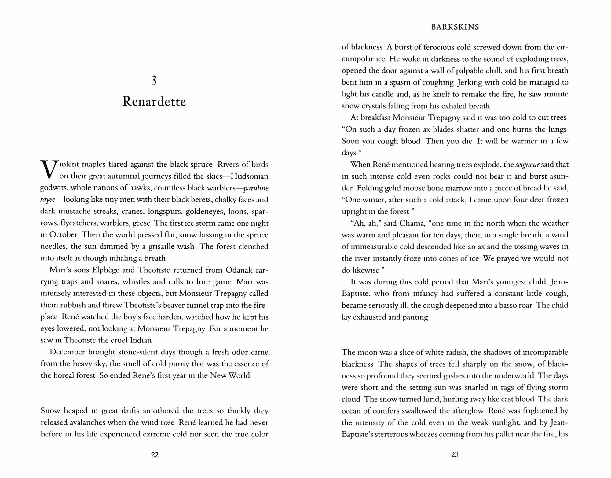 In the late seventeenth century two penniless young Frenchmen, Rene Sel and Charles Duquet, arrive in New France. Bound to a feudal lord, a "seigneur," for three years in exchange for land, they become wood-cutters - barkskins. Rene suffers extraordinary hardship, oppressed by the forest he is charged with clearing. He is forced to marry a Mi'kmaw woman and their descendants live trapped between two inimical cultures. But Duquet, crafty and ruthless, runs away from the seigneur, becomes a fur trader, then sets up a timber business. Proulx tells the stories of the descendants of Sel and Duquet over three hundred years - their travels across North America, to Europe, China, and New Zealand, under stunningly brutal conditions; the revenge of rivals; accidents; pestilence; Indian attacks; and cultural annihilation. Over and over again, they seize what they can of a presumed infinite resource, leaving the modern-day characters face to face with possible ecological collapse.